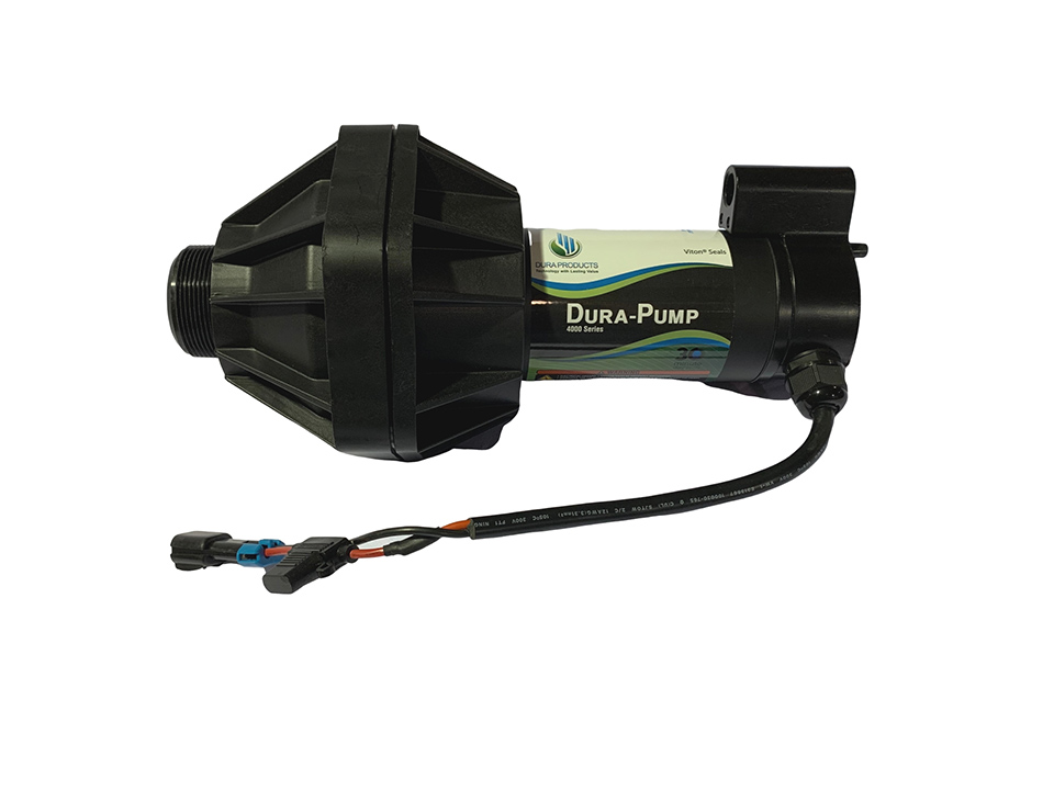 Dura Products high-flow Dura-Pump™ can pump up to 15 Gallons per Minute (56 liters per minute). It is a self-priming diaphragm pump with internal by-pass. Additionally, the motor is thermally protected from overheating.