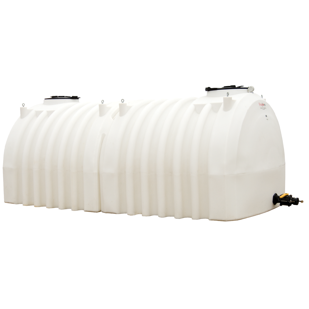 Available in heavy-duty white or Gen2 (white exterior, black interior) versions. The 3250 imp. gal. (3900 US gal.) is a modular design, 2 tanks bolted together with custom bulkheads to both operate as 1 tank, but with a built in baffle. The 1150 imp. gal. (1380 US gal), 1350 imp. gal. (1620 US gal.), 1950 imp. gal. (2340 US gal.), and 2650 imp. gal (3180 US gal.) are a 1-piece design.