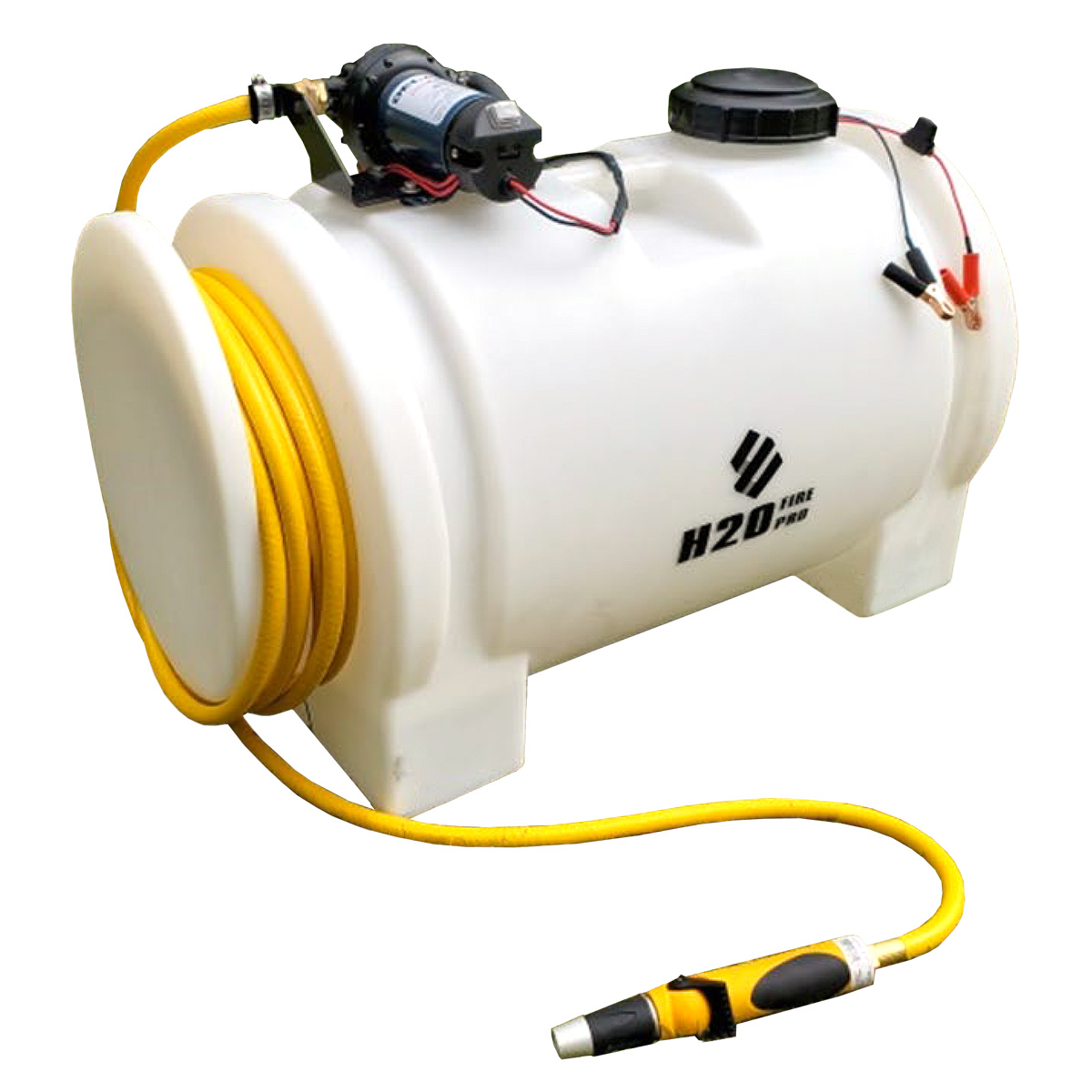 Intended for fighting fires and hot spots, the H2O Fire Pro delivers a strong uniform stream of water to the intended area. A 40 US gallon tank and a 5 GPM pump allows the user 8 minutes of use before refill.