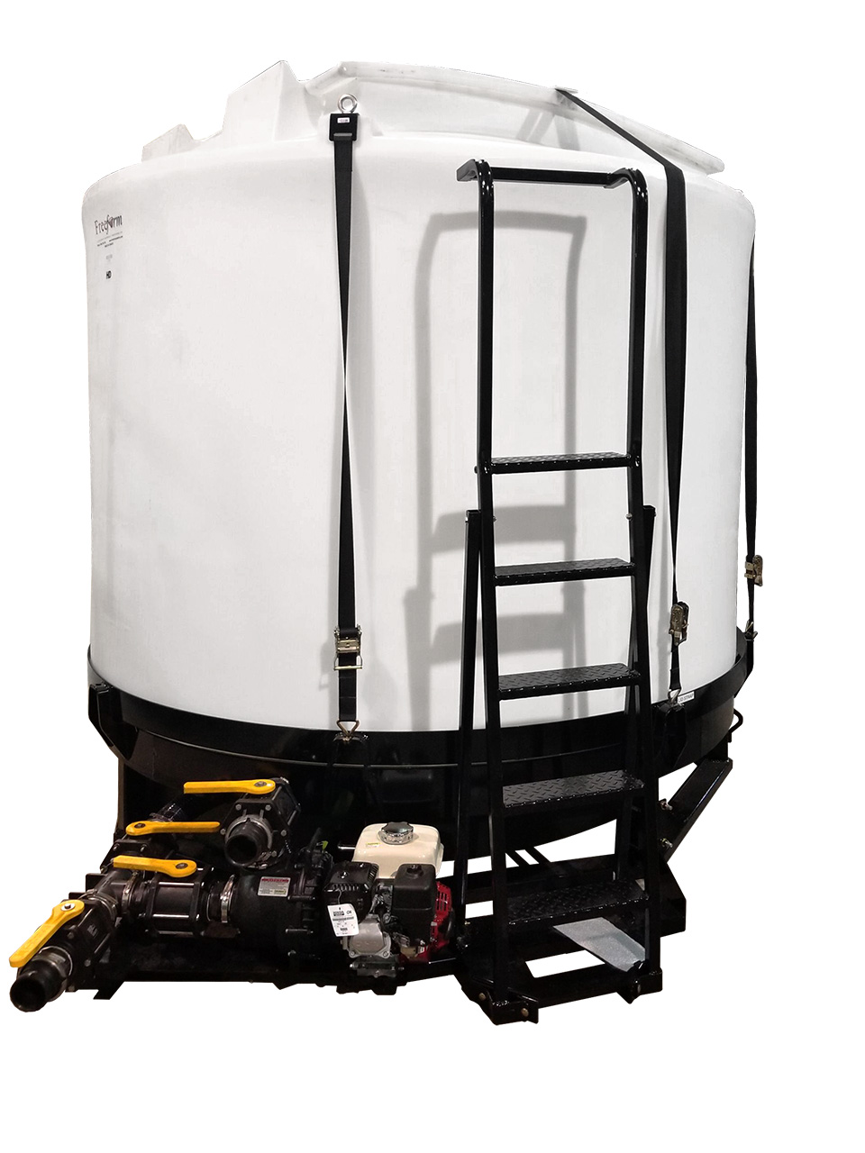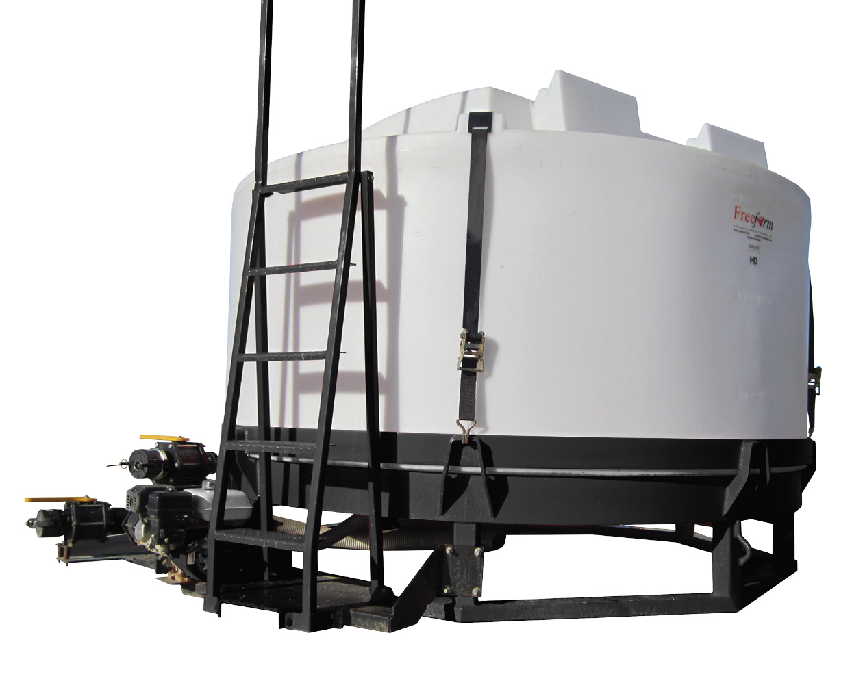 The MIXSYS by Free Form Plastics is a cone bottom mixing tank that is designed to allow creation of custom blends whether liquid or solid (dry concentrate) (like Agrotain). Dumping large bulk bags/containers can be very difficult with a regular tank, but the MIXSYS is set up with a large 60″ × 60″ opening, ladder and plumbing to make it simple!