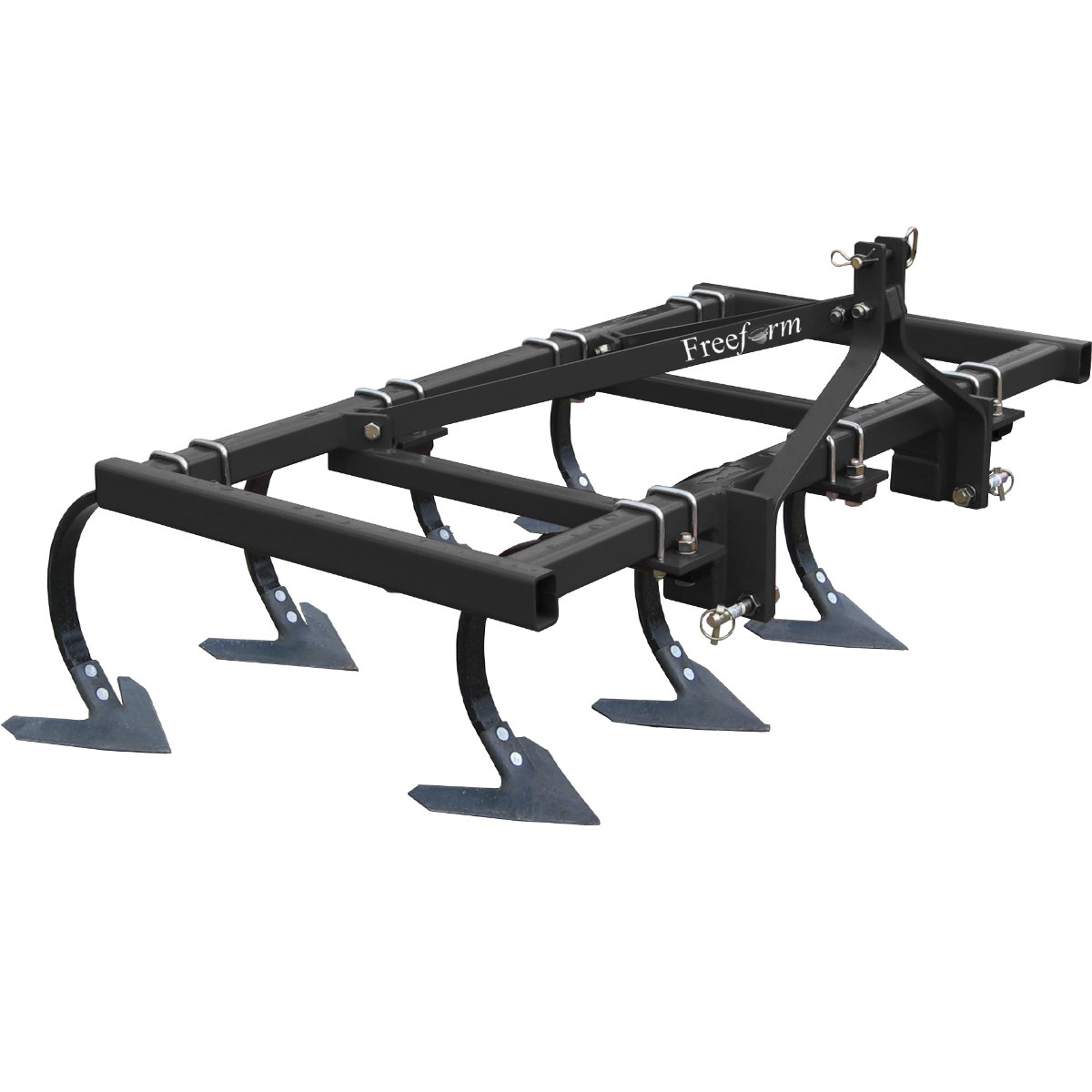 The model 1000 cultivator is available in three popular sizes (5.25′, 6.75′, 8.25′). This Heavy-Duty version has been designed to do a proper job of cultivating tree lines, gardens, reclamation sites, etc. Standard equipment includes category 1 (3-Point hitch hookup), 47 degree sweeps, ⅞” shanks with 9″ spacing.