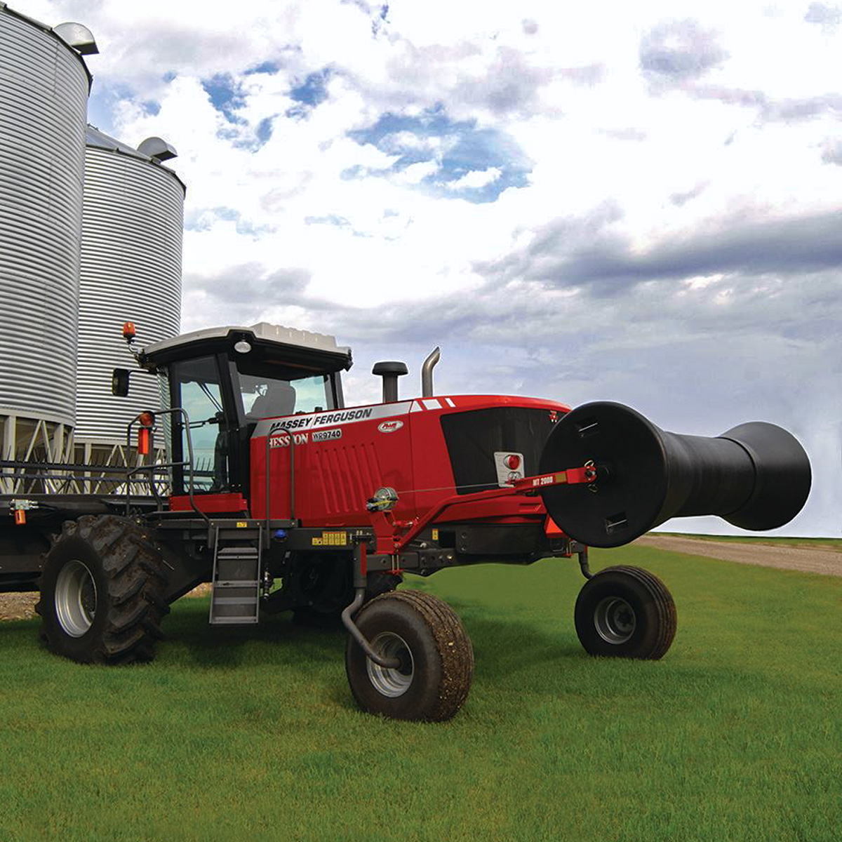 Like the hydraulic model, the winch cable model is designed to fit all swather makes/models (hardware is supplied). Unlike the hydraulic model, adjustment is done manually by a winch mounted on the rear axle. The MT2000W roller comes standard with the high lift feature for easy transport and storage.