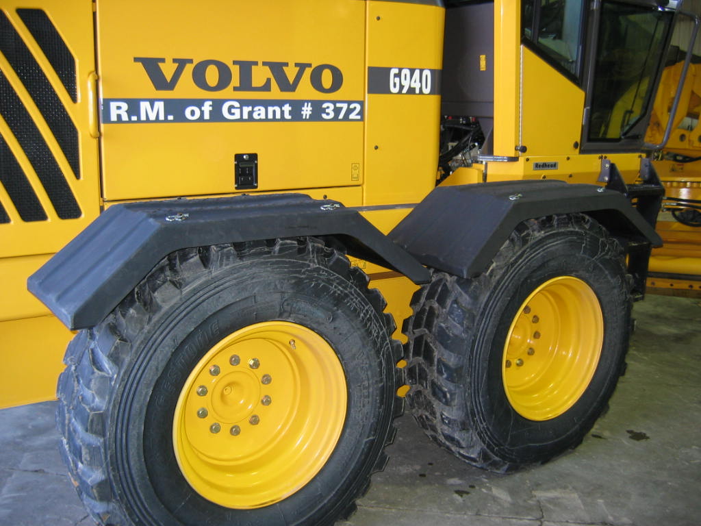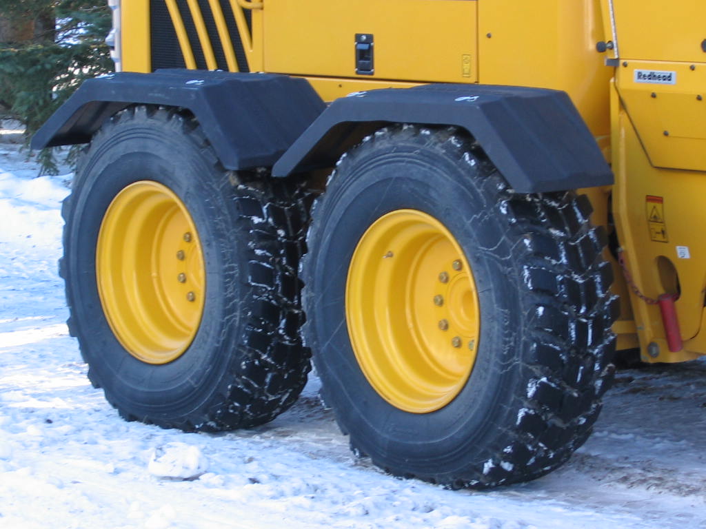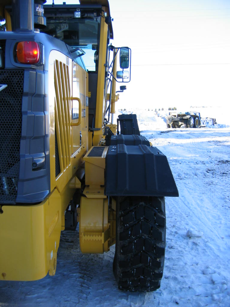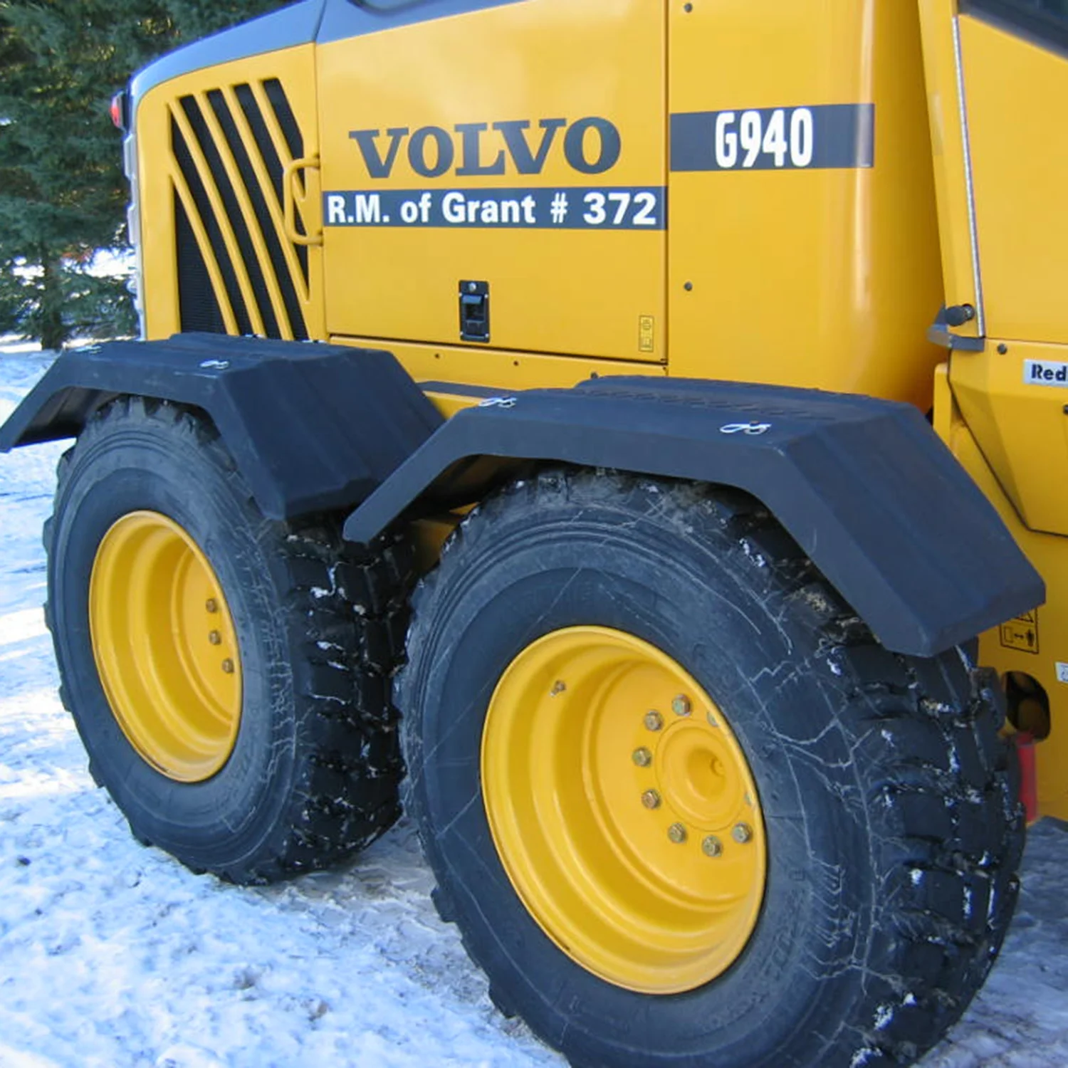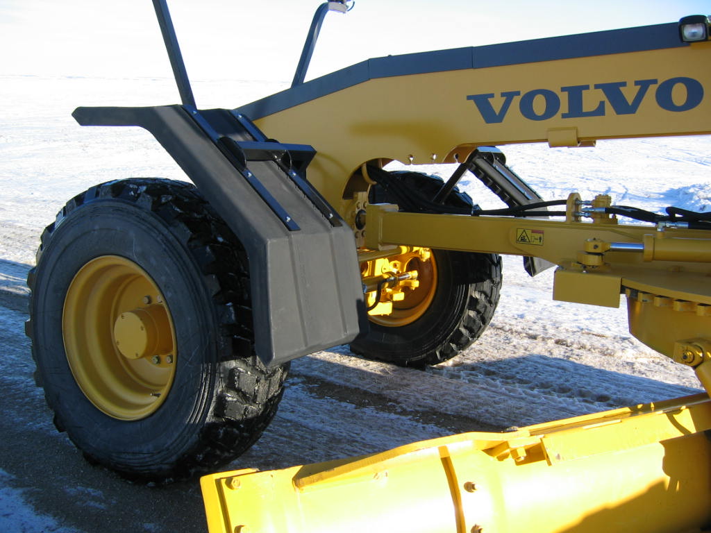 Mud flaps can be flipped up and pinned when performing specific tasks